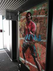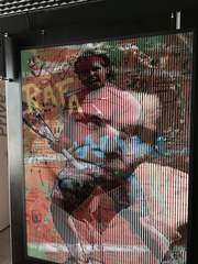 【余談】 スペインのマドリッドオープン、錦織、負けましたね…。残念。決勝は、錦織に勝ったイギリスのマレーと、スペインの英雄のナダルです。下の写真は、先月フランスのパリにあるテニスクラブに行った時に、そこのロピーにあったものです。1枚の写真を左から見ながら歩くと、写真がだんだん変わっていくのです。この写真は、ナダルです。ナダル頑張れ!私もラケットだけは、ナダルモデルを使ってます。ラケットだけは…。
