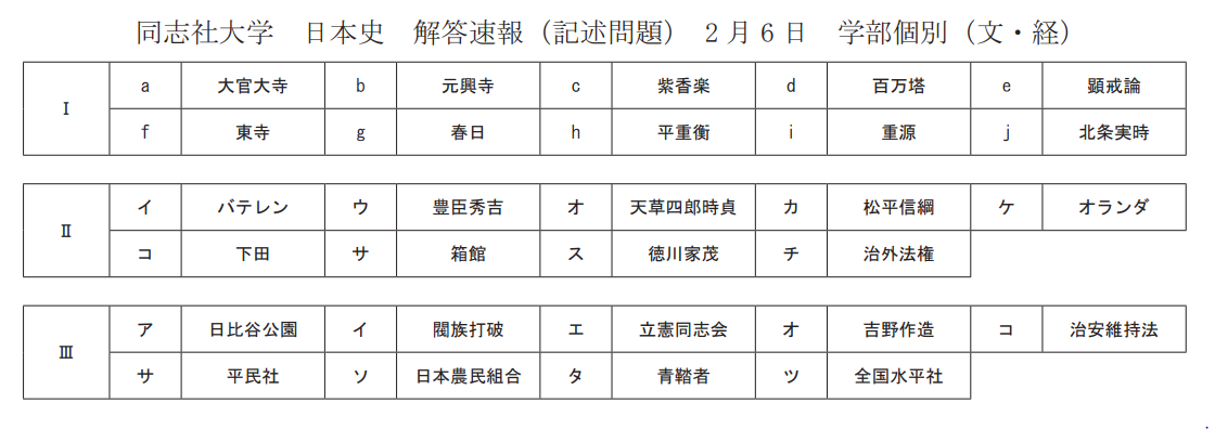 同志社大学(2月6日 学部個別日程)日本史の解答