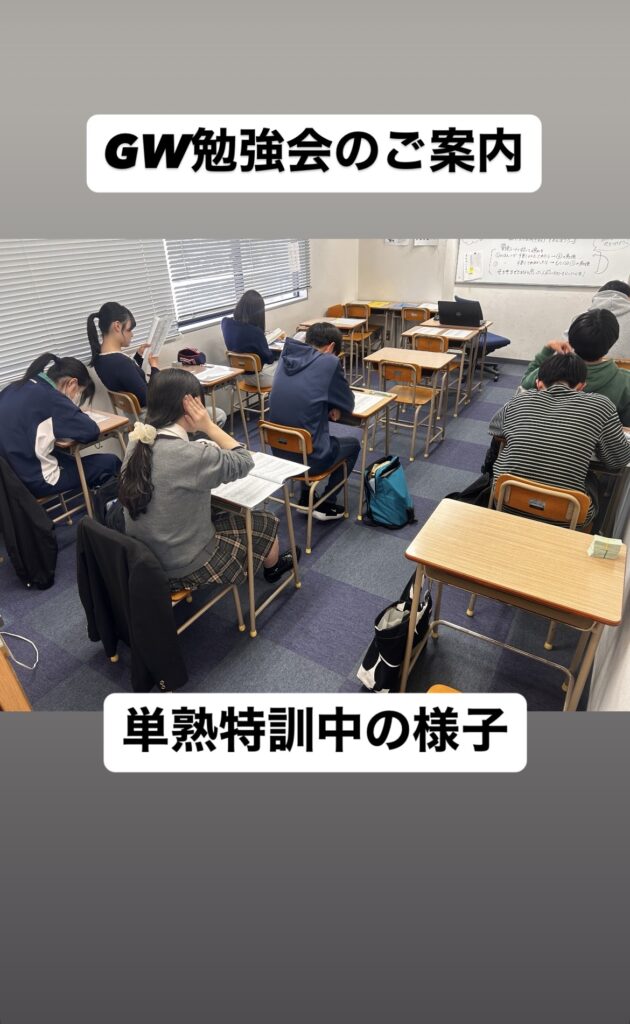 GW単熟特訓は、4月29・30日、5月2・3・4・5・6日の7日間で実施します。各日程とも、