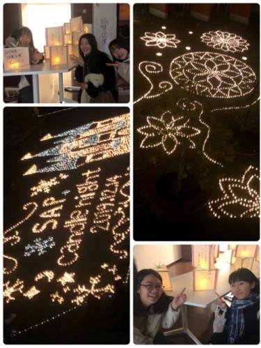 学生らが、数日かけてみんなで並べたキャンドルはとっても綺麗でした!そこで頑張ってる学生もキラキラしてましたー!